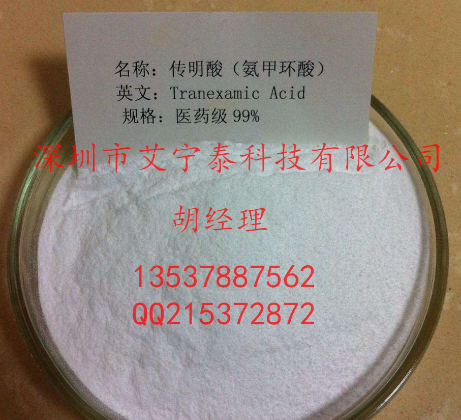 Chinese Synonyms: trans-4-(aminomethyl)cyclohexanecarboxylic acid; aminomethyl cyclohexanoic acid; antifibrinolytic acid; tranexamic acid; tranexamic acid impurity C; trans-4-(aminomethyl) Cyclohexanecarboxylic acid; trans-tranexamic acid