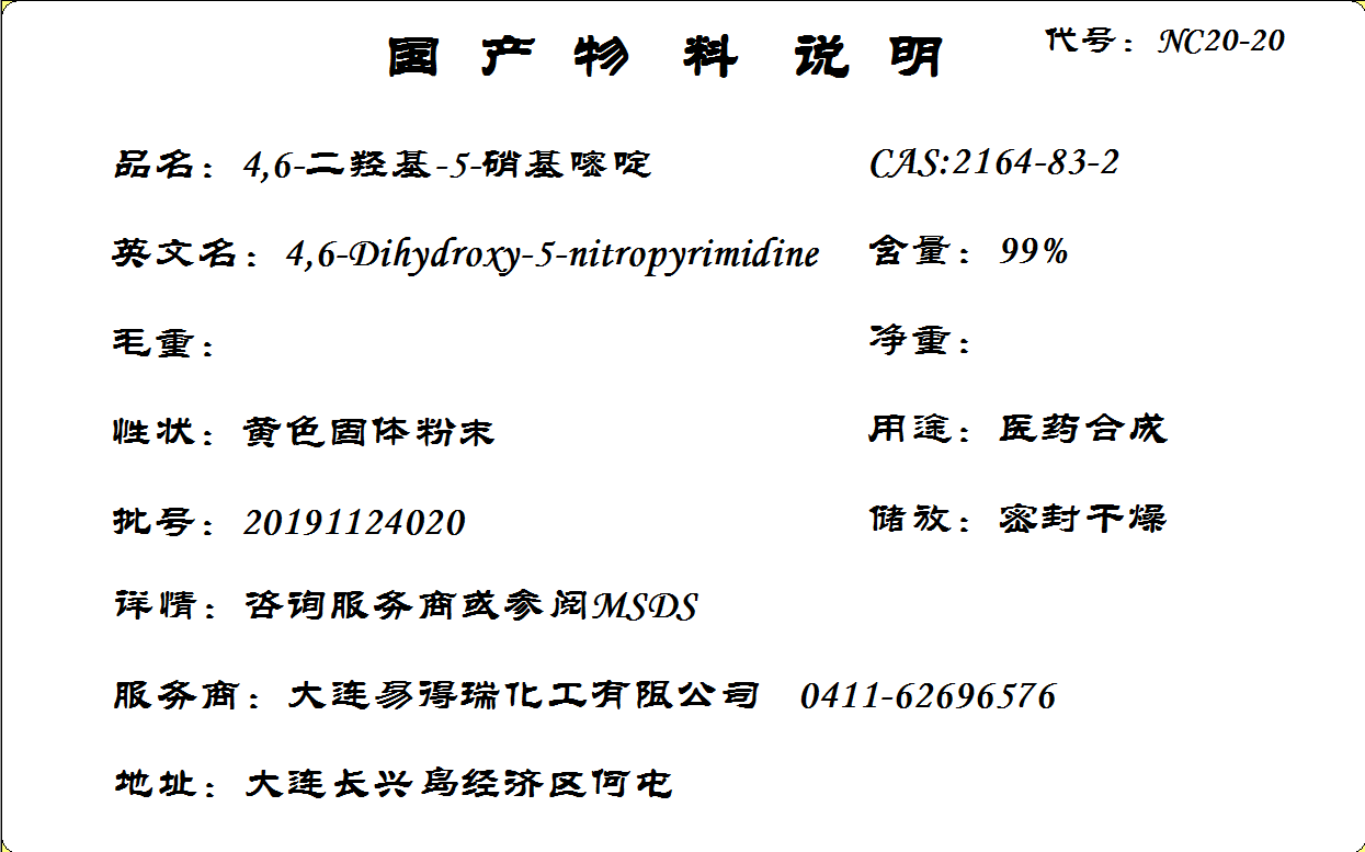 | 中文名 | 5-硝基-4,6-二羥基嘧啶 | ||||