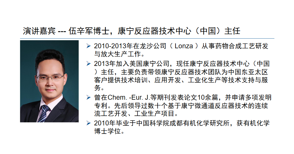 伍辛軍博士,康寧反應(yīng)器技術(shù)中心(中國)主任。