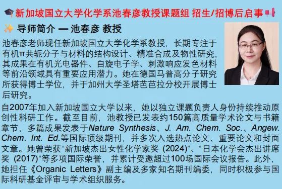 池教授團(tuán)隊(duì)氛圍開放、包容且富有創(chuàng)新精神,擁有先進(jìn)的實(shí)驗(yàn)平臺(tái)與廣泛的國(guó)際合作平臺(tái)。她歡迎對(duì)有機(jī)合成、材料科學(xué)、自旋電子學(xué)等方向充滿熱情、立志在世界科研前沿有所突破的優(yōu)秀博士生加入,共同在化學(xué)與材料交叉領(lǐng)...