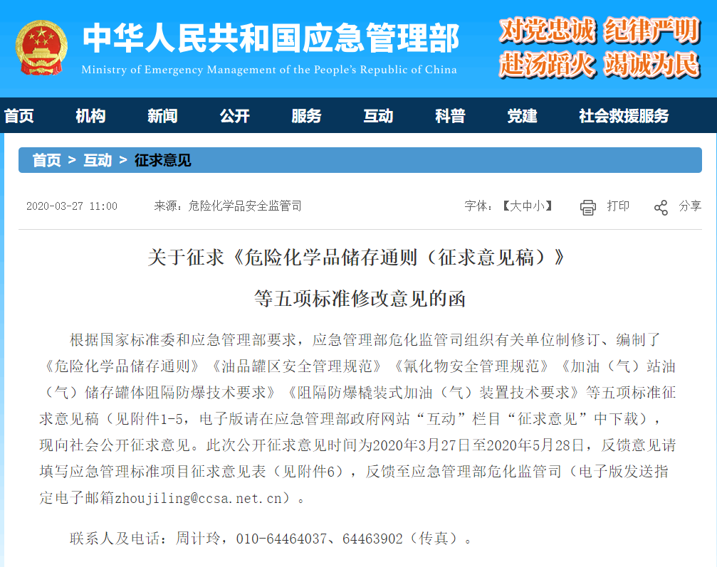 根據(jù)國家標(biāo)準(zhǔn)委和應(yīng)急管理部要求,應(yīng)急管理部?;O(jiān)管司組織有關(guān)單位制修訂、編制了《危險化學(xué)品儲存通則》《油品罐區(qū)安全管理規(guī)范》《氰化物安全管理規(guī)范》《加油(氣)站油(氣)儲存罐體阻隔防爆技術(shù)要求》《阻隔...