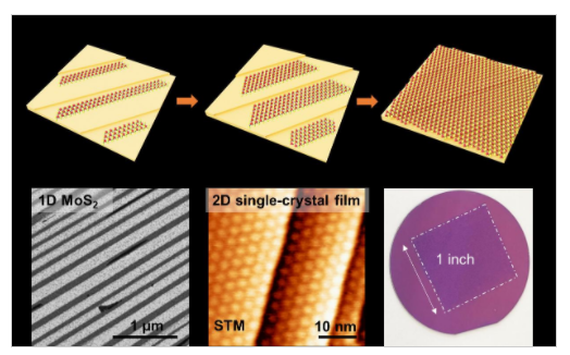 近日,北京大學張艷鋒教授課題組基于基底臺階邊緣誘導取向和晶格匹配誘導外延生長兩種機制的協(xié)同作用,在具有高密勒指數(shù)、Au(111)單晶的近鄰面上,實現(xiàn)了單一取向排列、單層MoS2條帶的控制生長,通過完美...