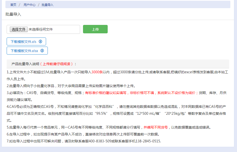如果您批量上傳產(chǎn)品遇到其他問題,請(qǐng)及時(shí)聯(lián)系化學(xué)加網(wǎng)客服進(jìn)行反饋。