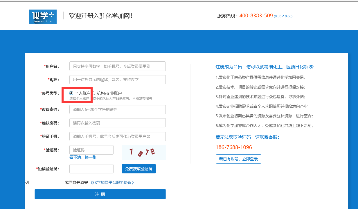 步驟一:求職者訪問化學(xué)加網(wǎng)注冊(cè)個(gè)人賬戶。注冊(cè)網(wǎng)址:http://www.www.yqxsz.com/register.html,如下圖所示