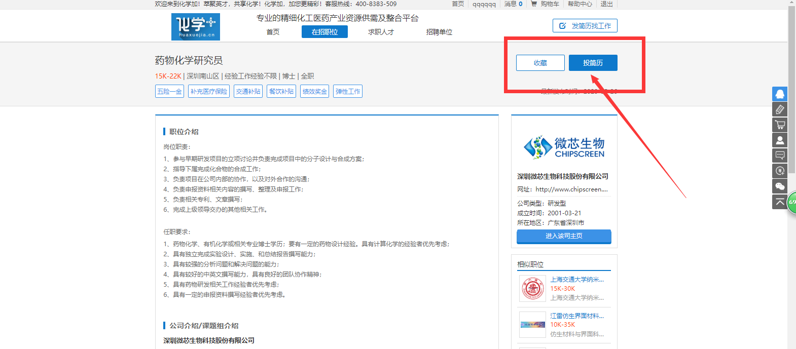 步驟七:看到心儀的職位,點(diǎn)擊進(jìn)入,投遞簡歷。還可收藏該職位哦。