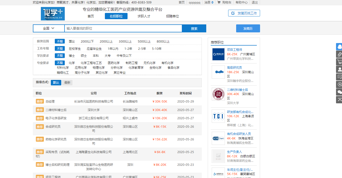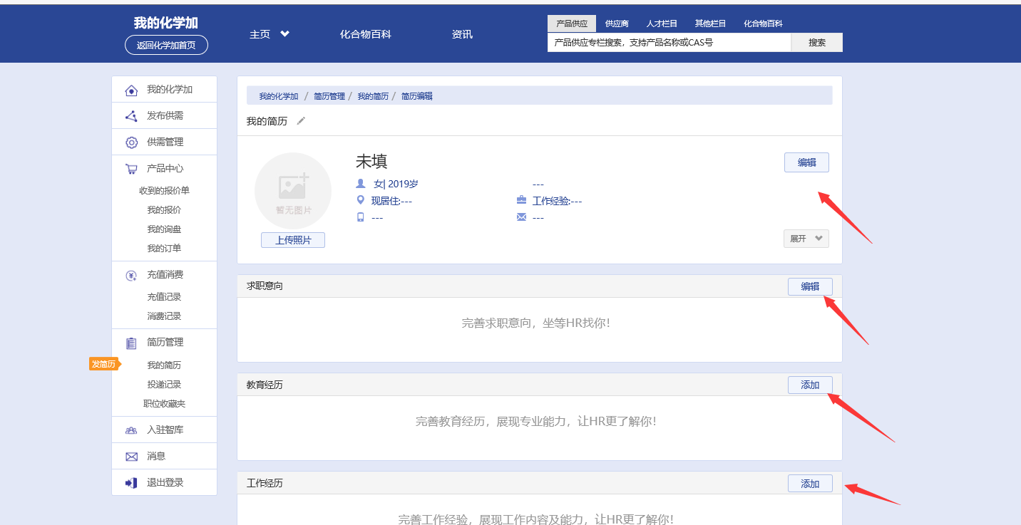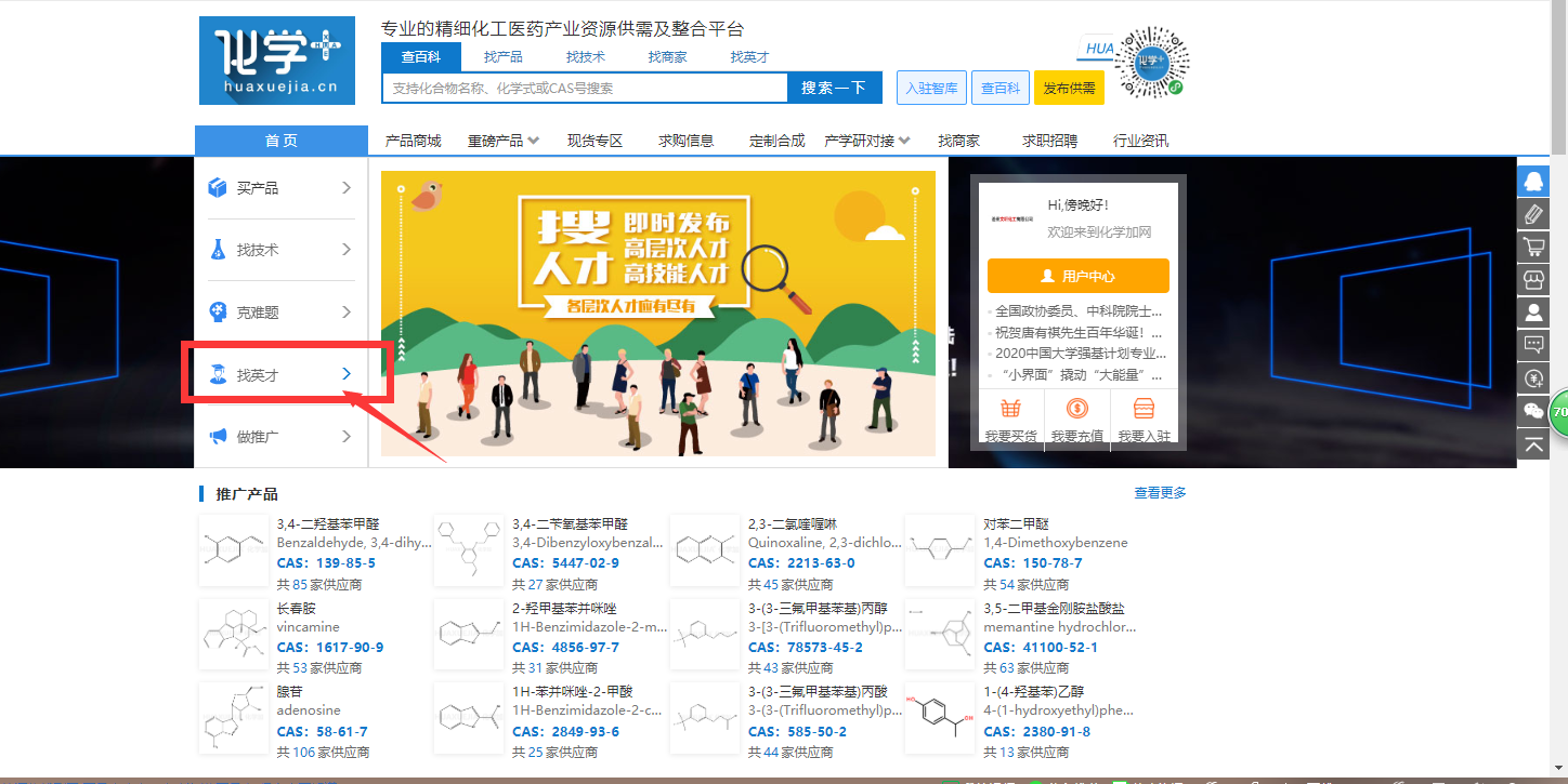 步驟五:創(chuàng)建好自己的簡歷,接下回到化學(xué)加首頁,進(jìn)入“找英才”。