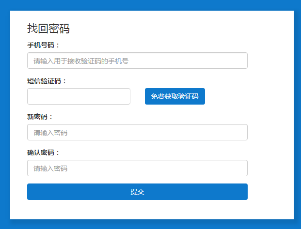步驟二:填入用于接收驗證碼的手機(jī)號,并點擊“免費獲取驗證碼”,化學(xué)加網(wǎng)將向您的手機(jī)發(fā)送一條含有驗證碼的短信。在您收到短信后,將短信中的驗證碼填寫到頁面中。輸入并確認(rèn)新密碼,即可將原密碼替換成新密碼。兩次輸入的密碼必須完全相同,且不與原密碼重復(fù)。點擊“提交”按鈕。