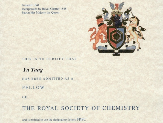 近日,蘭州大學化學化工學院唐瑜教授收到英國皇家化學會頒發(fā)的證書,2021年5月當選英國皇家化學會會士(Fellow of the Royal Society of Chemistry,F(xiàn)RSC)。...