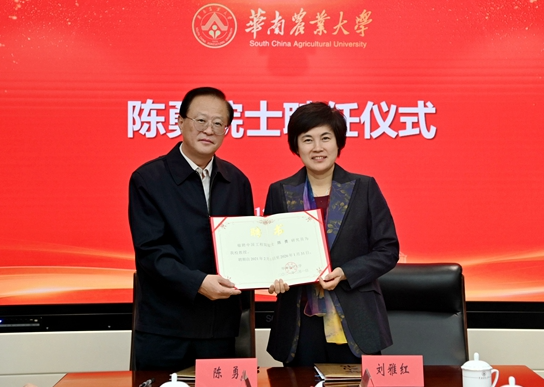 2月3日上午,中國(guó)工程院院士陳勇研究員聘任儀式在華南農(nóng)業(yè)大學(xué)行政樓七樓會(huì)議室舉行。華南農(nóng)業(yè)大學(xué)校長(zhǎng)劉雅紅出席儀式并為陳勇院士頒發(fā)聘書。聘任儀式由華南農(nóng)業(yè)大學(xué)副校長(zhǎng)溫小波主持。陳勇院士受聘華南農(nóng)業(yè)大學(xué)后...