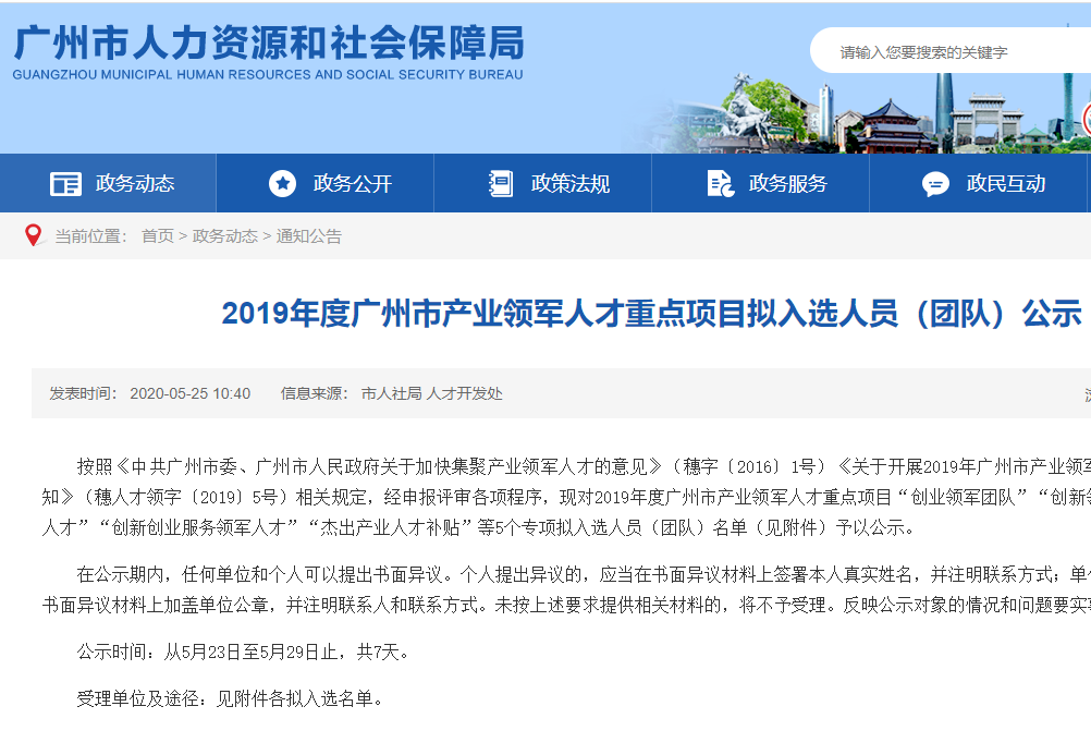 按照《中共廣州市委、廣州市人民政府關(guān)于加快集聚產(chǎn)業(yè)領(lǐng)軍人才的意見》(穗字〔2016〕1號)《關(guān)于開展2019年廣州市產(chǎn)業(yè)領(lǐng)軍人才各專項申報的通知》(穗人才領(lǐng)字〔2019〕5號)相關(guān)規(guī)定,經(jīng)申報評審各項...