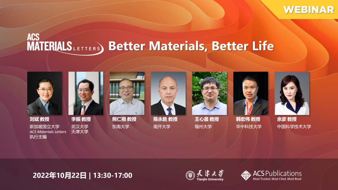 ACS Materials Letters Transformative Materials Research 系列研討會天津大學(xué)專場將于 10月22日下午1:30線上舉行。...