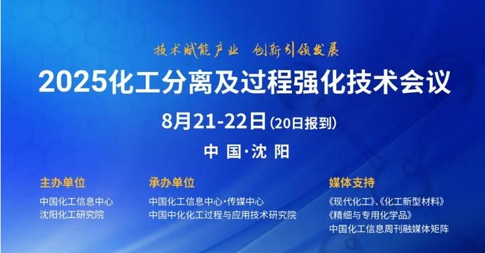 2025化工分離及過程強(qiáng)化技術(shù)會議于2025年8月21-22日在沈陽舉辦...