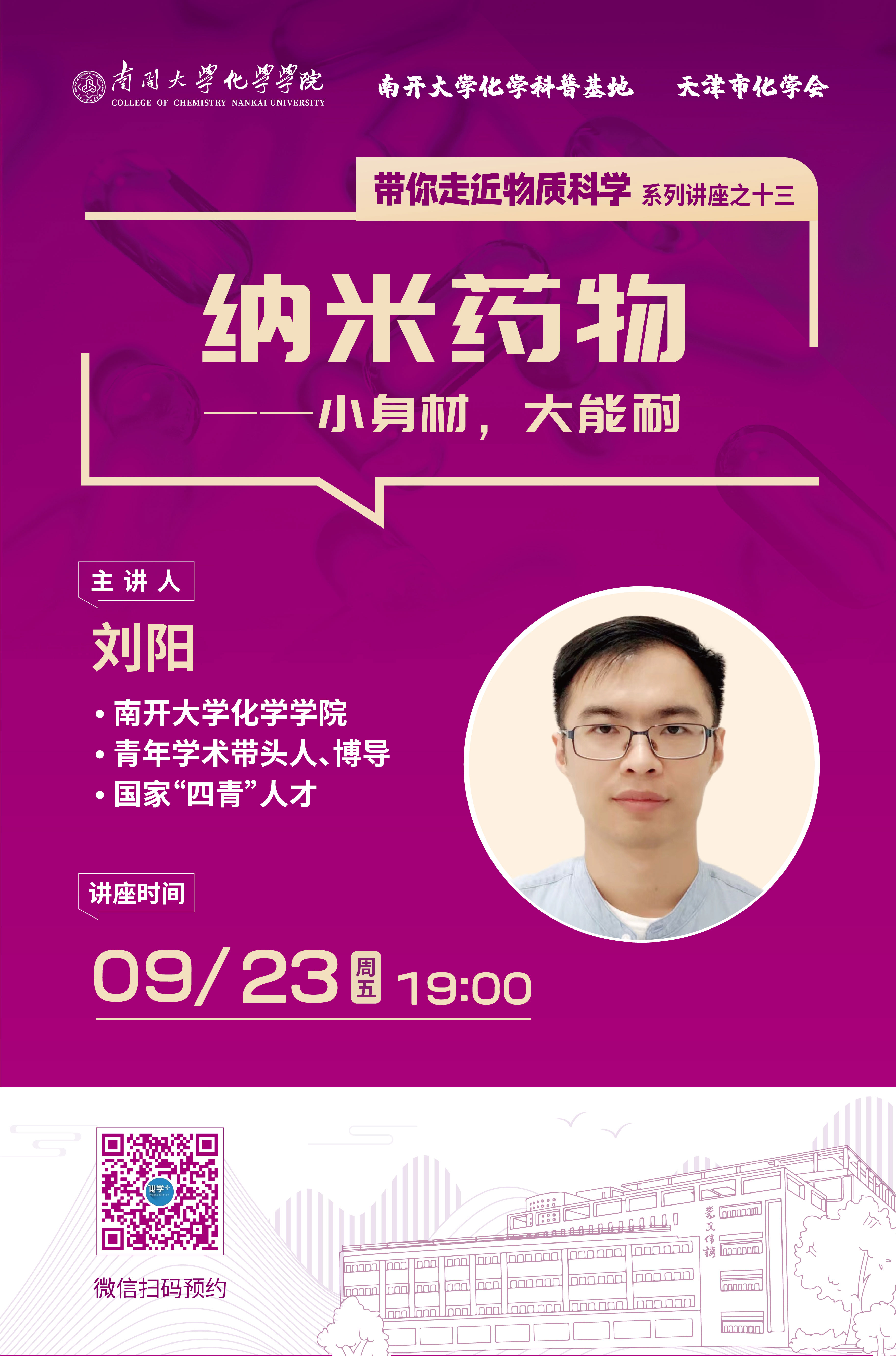 第十三場講座由南開大學(xué)化學(xué)學(xué)院博士生導(dǎo)師劉陽研究員帶來“納米藥物 – 小身材,大能耐”。本周五19點(diǎn)共同期待!...