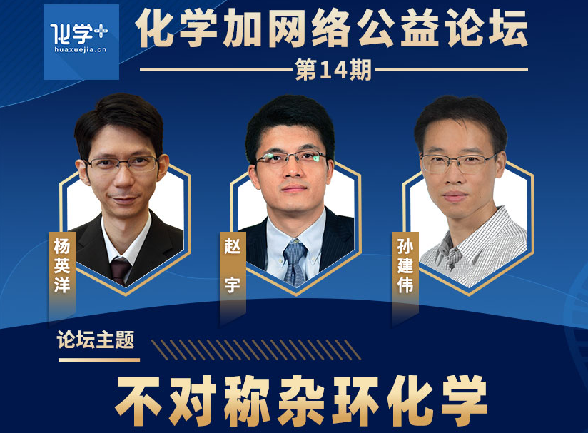化學(xué)加網(wǎng)絡(luò)公益論壇第14期將于2022年8月6日(星期六)14:00-16:30舉行,我們很高興邀請(qǐng)到了香港中文大學(xué)化學(xué)系楊英洋教授,新加坡國(guó)立大學(xué)化學(xué)系趙宇副教授,香港科技大學(xué)化學(xué)系孫建偉教授等三位...
