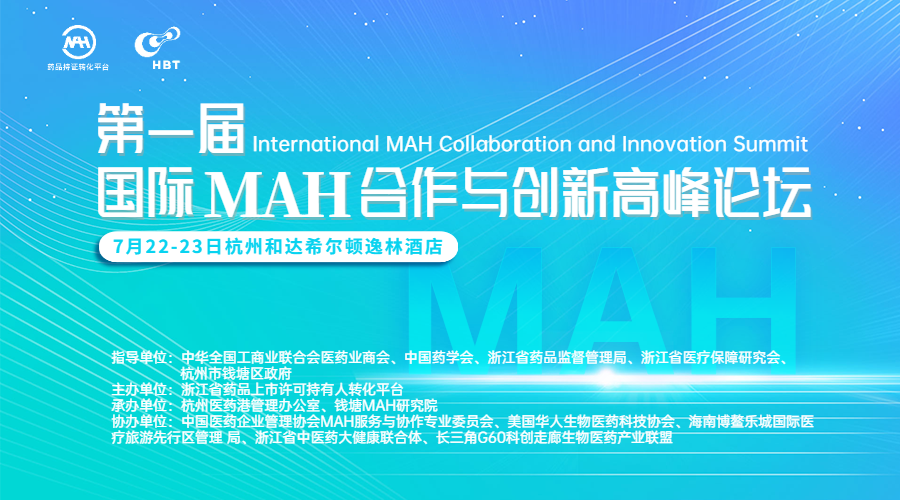 7月22日—7月23日,杭州,第一屆國(guó)際MAH合作與創(chuàng)新高峰論壇舉辦!由中華全國(guó)工商業(yè)聯(lián)合會(huì)醫(yī)藥業(yè)商會(huì)和中國(guó)藥學(xué)會(huì)等單位指導(dǎo),浙江省藥品MAH轉(zhuǎn)化平臺(tái)主辦。盛夏時(shí)分,正當(dāng)好時(shí),與您相約西子湖畔,共商共...