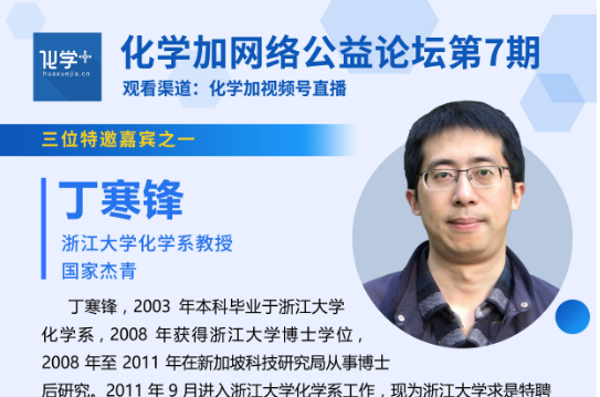 化學(xué)加網(wǎng)絡(luò)公益論壇第7期將于2022年6月11日(星期六)14:00-16:30舉行,我們很高興邀請(qǐng)到了北京大學(xué)藥學(xué)院賈彥興教授、四川大學(xué)化學(xué)學(xué)院劉波教授、浙江大學(xué)化學(xué)系丁寒鋒教授等三位嘉賓做報(bào)告分享...