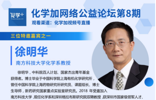 化學(xué)加網(wǎng)絡(luò)公益論壇第8期將于2022年6月18日(星期六)14:00-16:30舉行,我們很高興邀請(qǐng)到了南方科技大學(xué)化學(xué)系徐明華教授、四川大學(xué)化學(xué)學(xué)院劉小華教授、復(fù)旦大學(xué)化學(xué)系張俊良教授等三位嘉賓做報(bào)...