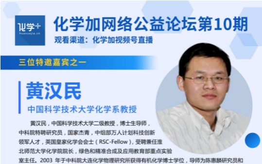 化學(xué)加網(wǎng)絡(luò)公益論壇第10期將于2022年7月2日(星期六)14:00-16:30舉行,我們很高興邀請(qǐng)到了中國(guó)科學(xué)技術(shù)大學(xué)化學(xué)系黃漢民教授、浙江大學(xué)化學(xué)系史炳鋒教授、南京大學(xué)化學(xué)化工學(xué)院史壯志教授三位嘉...
