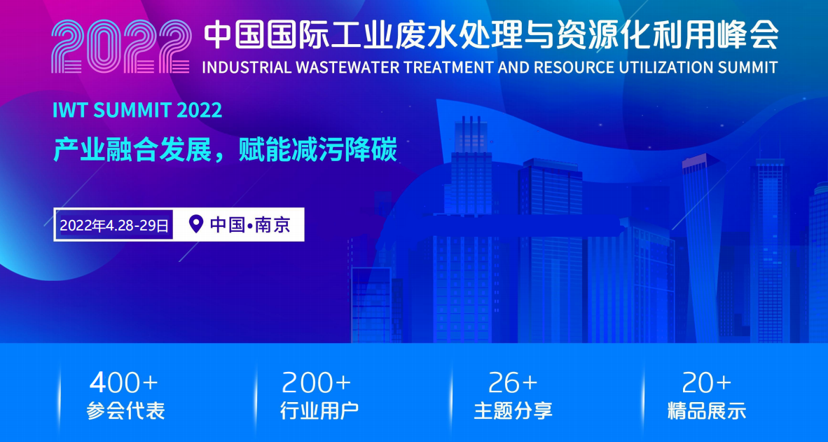 2022中國工業(yè)廢水處理與資源化利用峰會將于4月28-29日在南京盛大召開,以“產(chǎn)業(yè)融合發(fā)展,賦能減污降碳”為主題,屆時邀請400+相關部門領導、行業(yè)專家、科研院所,知名企業(yè)代表就工業(yè)廢水處理處置及資...