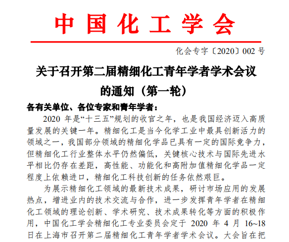 為展示精細化工領域的最新技術成果,研討市場應用的發(fā)展熱點,增進業(yè)內的技術交流與合作,進一步發(fā)揮青年學者在精細化工領域的理論創(chuàng)新、學術研究、技術成果轉化等方面的積極作用,中國化工學會精細化工專業(yè)委員會定...