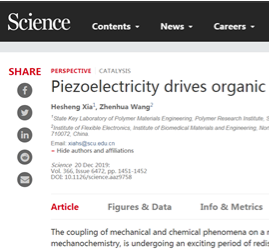 12月20日,國際著名學(xué)術(shù)期刊《Science》發(fā)表了四川大學(xué)高分子材料工程國家重點實驗室/高分子研究所夏和生教授(夏和生教授為該論文第一作者,四川大學(xué)為該論文第一單位)與西北工業(yè)大學(xué)柔性電子研究院王...