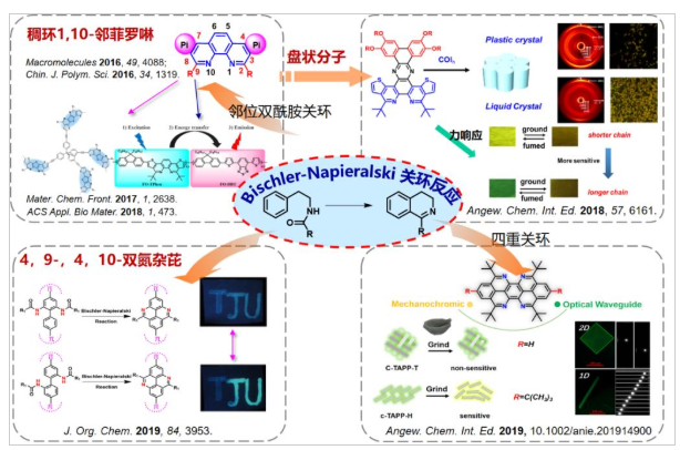Bischler?Napieralski關(guān)環(huán)反應(yīng)是藥物化學(xué)中合成氮雜環(huán)分子的一類高效反應(yīng)。雖然該反應(yīng)從發(fā)現(xiàn)至今已有一百多年的歷史,但是其應(yīng)用范圍主要局限在藥物中間體及天然產(chǎn)物的合成上,將其用于合成發(fā)光...