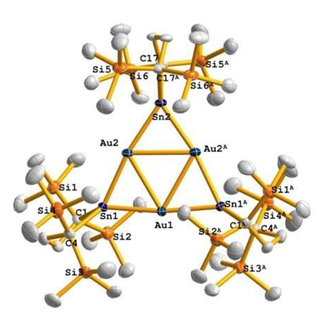 近日,杭州師范大學(xué)有機硅實驗室李志芳研究員課題組在芳香性金簇的合成方面取得新進展,相關(guān)研究成果“A Stable Cyclic (R2SnAu)3 Anion Having In-Plane σ-M?...