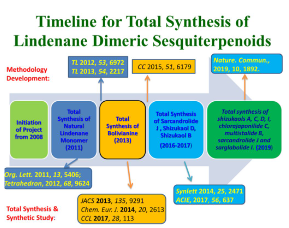 烏藥烷倍半萜二聚體,作為從金粟蘭科植物分離得到的最具代表性的天然代謝物,因其具有復雜的結構和優(yōu)良的生物活性而受到人們廣泛的關注。迄今為止,國內(nèi)外已有多個課題組報道了對這類倍半萜單體或二聚體的全合成研究...