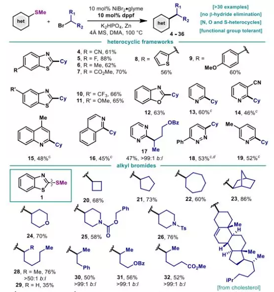 德國馬克斯普朗克煤炭研究所的Josep Cornella課題組最近報道了Ni催化的雜芳基C-SMe與溴代烷烴的C-C還原偶聯(lián)反應(yīng),相關(guān)工作發(fā)表在J. Am. Chem. Soc.上(DOI: 10.1...
