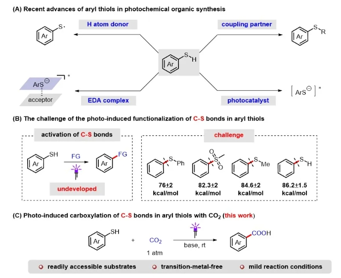 惰性C–S鍵的活化與轉(zhuǎn)化研究對功能聚合物、復(fù)合材料和藥物分子的制備以及石油煉制工業(yè)等領(lǐng)域具有重要作用。近年來,硫酚因其在光化學(xué)領(lǐng)域展現(xiàn)的多功能性而受到化學(xué)家的廣泛關(guān)注。它們可以作為氫原子轉(zhuǎn)移(HAT)...
