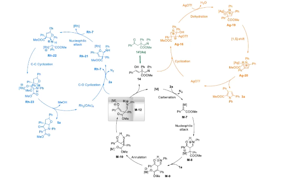 近日,云南大學(xué)金毅課題組與哈爾濱工業(yè)大學(xué)(深圳)宋利娟課題組合作,在ACS Catalysis(《美國化學(xué) 催化》雜志)報道了金屬卡賓介導(dǎo)的選擇性化學(xué)轉(zhuǎn)化:銀、鈀和銠催化烯胺酮和重氮酯的實驗與DFT研...