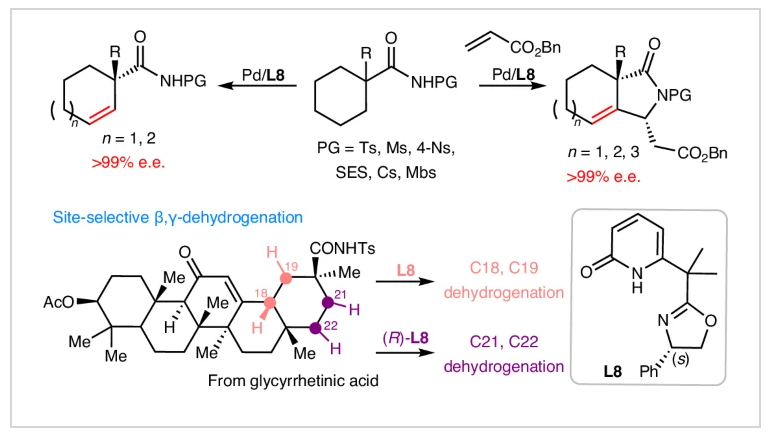 近日,美國斯克利普斯研究所(The Scripps Research Institute)余金權(quán)課題組報道了手性噁唑啉-吡啶酮配體對環(huán)烷基酰胺的β,γ-脫氫反應(yīng)和β,γ-脫氫-烯基化反應(yīng)。不同環(huán)尺寸(...