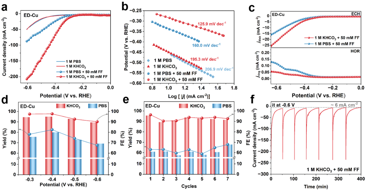 該論文考察了幾種中性電解液體系中易被忽視的陰離子效應(yīng),揭示了碳酸氫根離子對有機分子中羰基的活化作用,證實了不同陰離子與有機分子間不同的配位環(huán)境并闡明了由此產(chǎn)生的電極表界面糠醛分子吸附行為差異。最終展示...