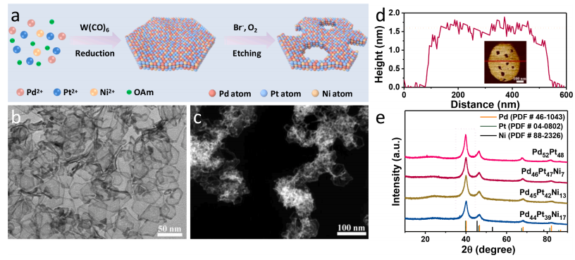 超薄多孔納米結(jié)構(gòu)的發(fā)展為優(yōu)化電催化劑的活性和穩(wěn)定性提供了新的契機(jī),特別是對(duì)于復(fù)雜的醇氧化反應(yīng)(AORs)。本文創(chuàng)制了一系列具有可調(diào)成分的多孔PdPtNi納米片,在堿性電解質(zhì)中實(shí)現(xiàn)了對(duì)甲醇和乙醇氧化反應(yīng)...
