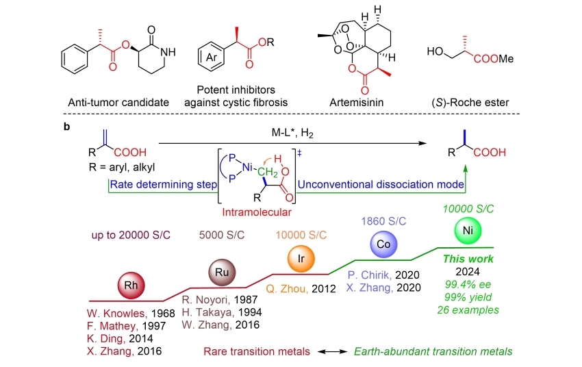 高效、綠色、廉價(jià)的反應(yīng)體系一直是化學(xué)家們?cè)谶^(guò)渡金屬催化不對(duì)稱氫化領(lǐng)域內(nèi)的不懈追求。近日,上海交通大學(xué)張萬(wàn)斌教授課題組報(bào)道了一種豐產(chǎn)金屬鎳催化α-取代丙烯酸的不對(duì)稱氫化反應(yīng),高效地合成了一系列手性α-取...