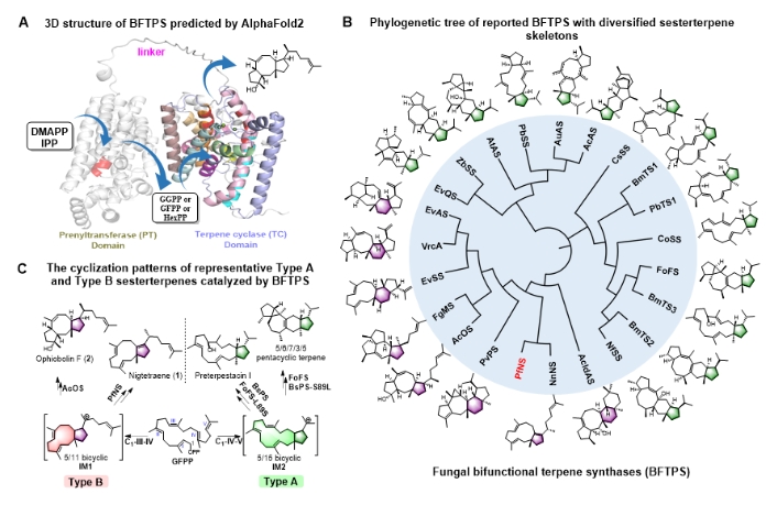 2024年6月27日,華東理工大學(xué)張立新教授團(tuán)隊(duì)劉雪婷課題組在雙功能萜合酶的設(shè)計(jì)改造方面取得新進(jìn)展,相關(guān)工作以“Function Switch of a Fungal Sesterterpene Sy...