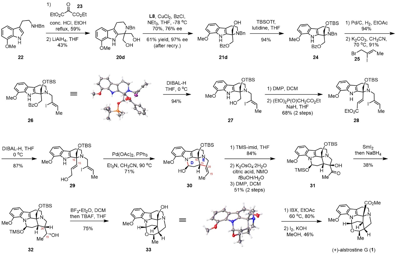 近日,華南理工大學(xué)的馬志強(qiáng)課題組,開發(fā)了一種環(huán)狀1,3-二醇催化不對(duì)稱的去對(duì)稱化策略,構(gòu)建了含氮雜季碳β-咔啉骨架;并通過串聯(lián)的Heck/半胺化反應(yīng),一步構(gòu)建D/E環(huán)系,實(shí)現(xiàn)了(+)-alstrost...