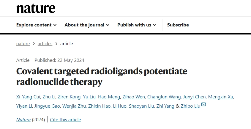 近日,北京大學(xué)化學(xué)與分子工程學(xué)院應(yīng)用化學(xué)系劉志博教授團隊于《自然》雜志在線發(fā)表了題為“Covalent Targeted Radioligands Potentiate Radionuclide Th...