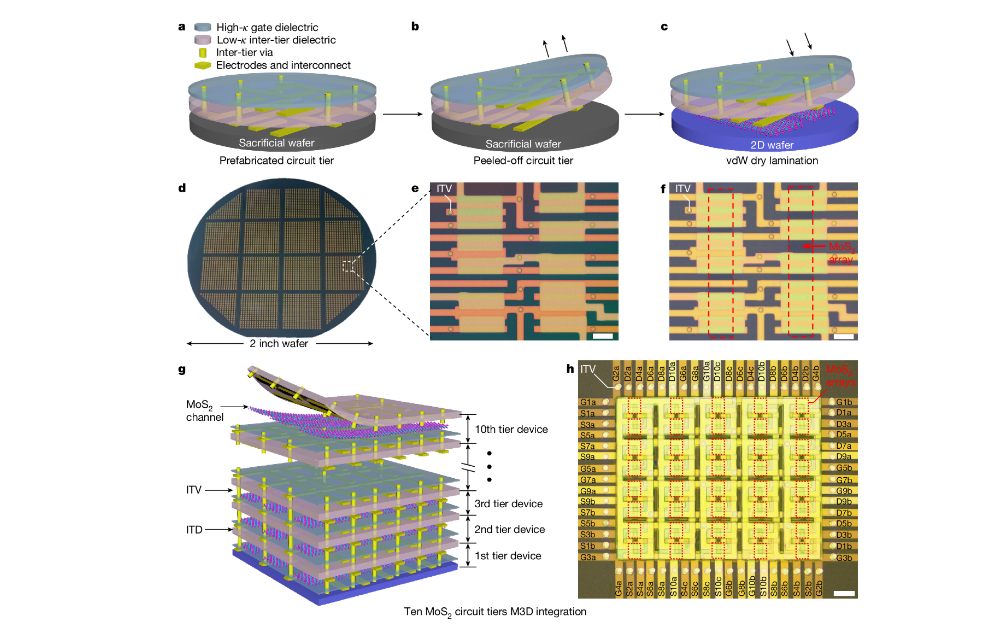 湖南大學(xué)校物理與微電子科學(xué)學(xué)院劉淵教授團隊報道了一種低溫的范德華單芯片三維集成工藝。該研究成果以“Monolithic three-dimensional tier-by-tier integrati...