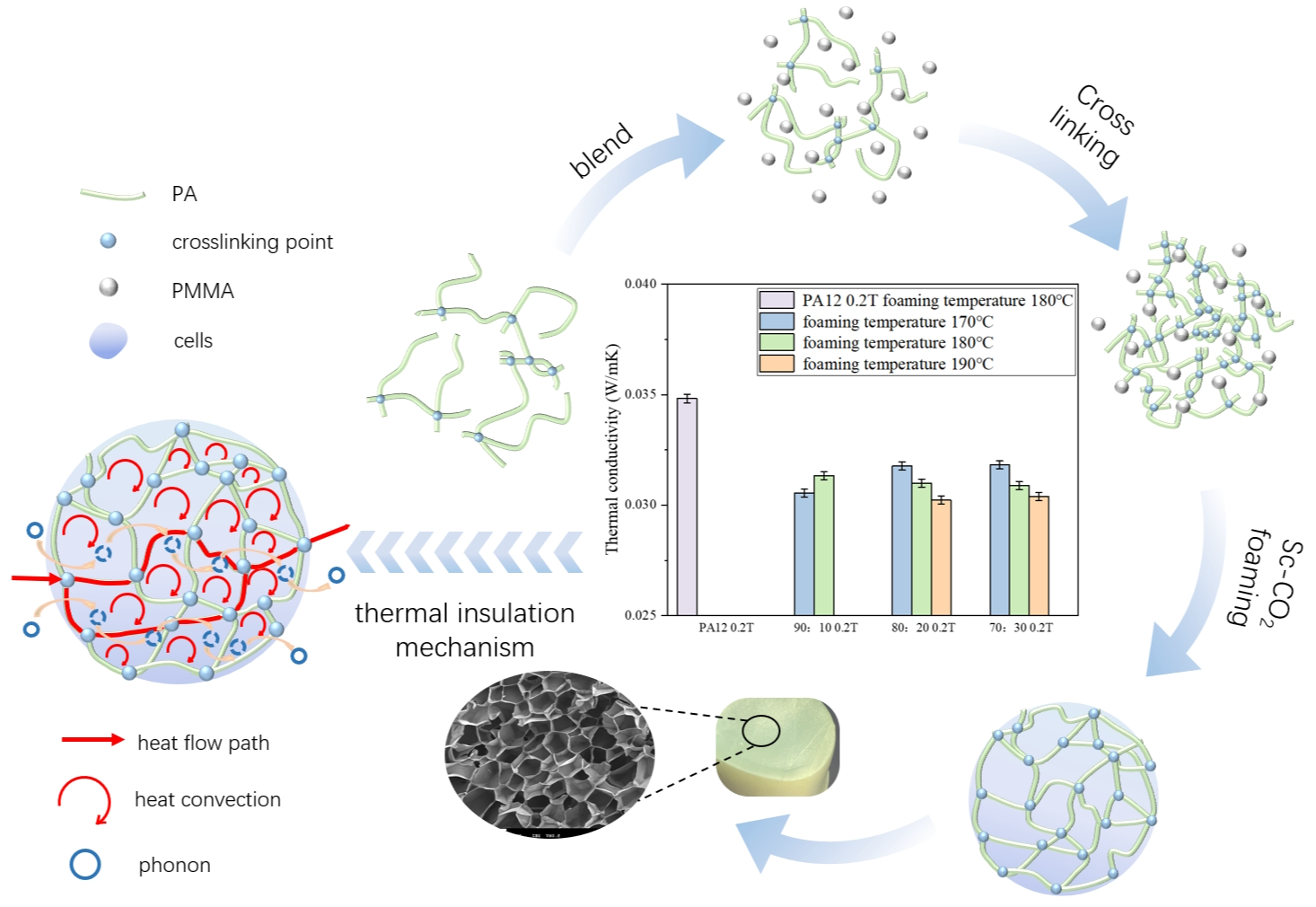 張振秀團隊針對目前泡沫保溫材料存在的難題,以具有良好的機械性能、高溫耐性、耐磨性、抗化學(xué)腐蝕性和低摩擦系數(shù)的工程塑料PA12為基體,通過控制聚甲基丙烯酸甲酯PMAM含量及擴鏈改性,使PA發(fā)泡材料具有低...