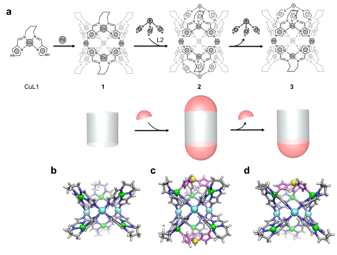 近日,暨南大學(xué)周小平/李丹教授團(tuán)隊(duì)開發(fā)了一種通過(guò)后合成修飾精準(zhǔn)合成MOC的新策略。首先設(shè)計(jì)合成金屬配合物配體并含不飽和配位點(diǎn)與鈀離子組裝合成管狀MOC 1,然后通過(guò)配位后合成修飾法精準(zhǔn)合成了兩例分別包...