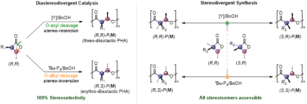 近日,科羅拉多州立大學(xué)Eugene Y.?X. Chen課題組提出了從生物來(lái)源的(R)-P3HB出發(fā)合成手性α(α)-烷基取代β-內(nèi)酯單體,通過(guò)催化立體發(fā)散開(kāi)環(huán)聚合,實(shí)現(xiàn)16種具有雙手性中心的對(duì)映純P...