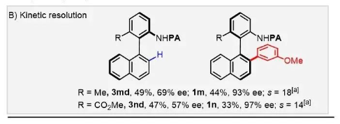 近日,浙江大學化學系史炳鋒教授課題組報道了基于動態(tài)動力學拆分策略的鈷/水楊基噁唑啉(Salox)催化阻轉(zhuǎn)選擇性C-H鍵芳基化反應(yīng),高效構(gòu)建了一系列軸手性聯(lián)芳化合物(高達99%的產(chǎn)率與99%的ee),通...
