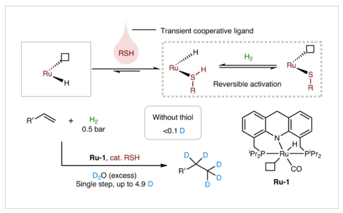 近日,以色列魏茨曼科學研究所(Weizmann Institute of Science)David Milstein課題組報道了利用H2和D2O現(xiàn)場生成的D2作為氘源,在pincer釕絡(luò)合物的催化下...