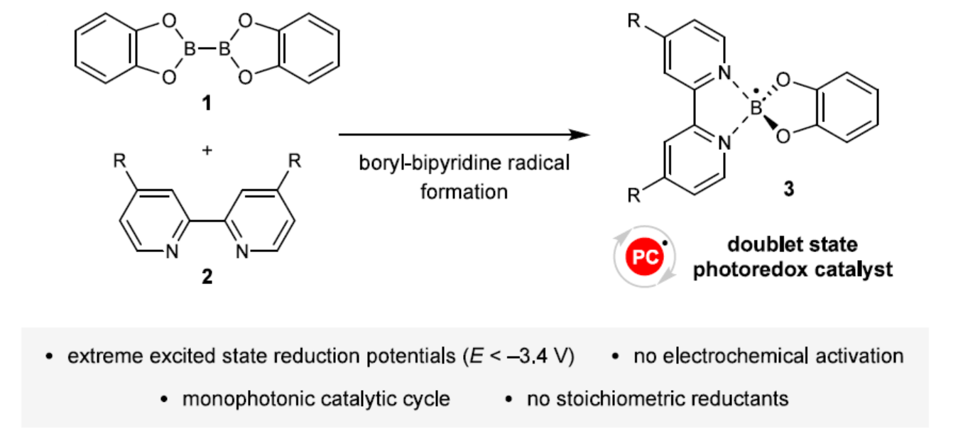 近日,英國(guó)布里斯托爾大學(xué)Varinder K. Aggarwal與Adam Noble課題組報(bào)道了一類(lèi)兼具穩(wěn)定性與高還原活性的硼基-聯(lián)吡啶自由基,其可通過(guò)聯(lián)吡啶與二硼試劑簡(jiǎn)單混合生成。研究發(fā)現(xiàn),這類(lèi)自...
