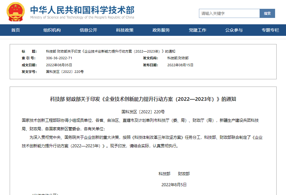 近日,科技部 財(cái)政部關(guān)于印發(fā)《企業(yè)技術(shù)創(chuàng)新能力提升行動(dòng)方案(2022—2023年)》的通知,充分發(fā)揮市場(chǎng)在資源配置中的決定性作用,更好發(fā)揮政府作用,聚焦企業(yè)創(chuàng)新能力關(guān)鍵環(huán)節(jié),突出問(wèn)題導(dǎo)向,強(qiáng)化精準(zhǔn)施策...
