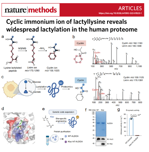 2022年6月27日,Nature Methods期刊在線發(fā)表了中國(guó)藥科大學(xué)郝海平/葉慧團(tuán)隊(duì)的最新研究工作成果(Cyclic immonium ion of lactyllysine reveals ...