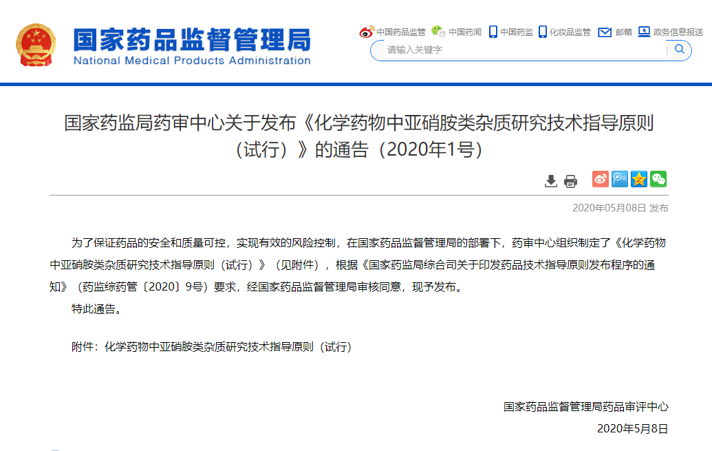 為了保證藥品的安全和質(zhì)量可控,實現(xiàn)有效的風險控制,在國家藥品監(jiān)督管理局的部署下,藥審中心組織制定了《化學藥物中亞硝胺類雜質(zhì)研究技術(shù)指導原則(試行)》(見附件),根據(jù)《國家藥監(jiān)局綜合司關(guān)于印發(fā)藥品技術(shù)...