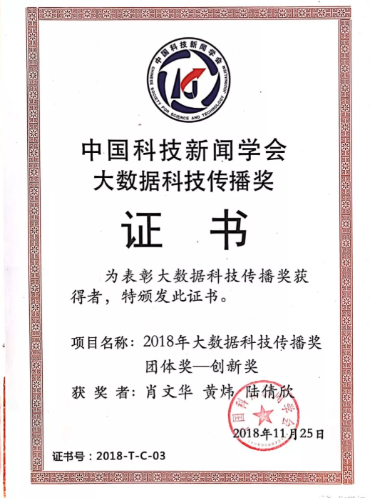 11月25日,由中國(guó)科技新聞學(xué)會(huì)主辦的以“下一代互聯(lián)網(wǎng)時(shí)代的科技傳播”為主題的”2018年中國(guó)科技傳播論壇”在北京中國(guó)科技會(huì)堂成功召開(kāi)。論壇同時(shí)舉行了“2018年科技傳播獎(jiǎng)”、“2018年大數(shù)據(jù)科技傳...
