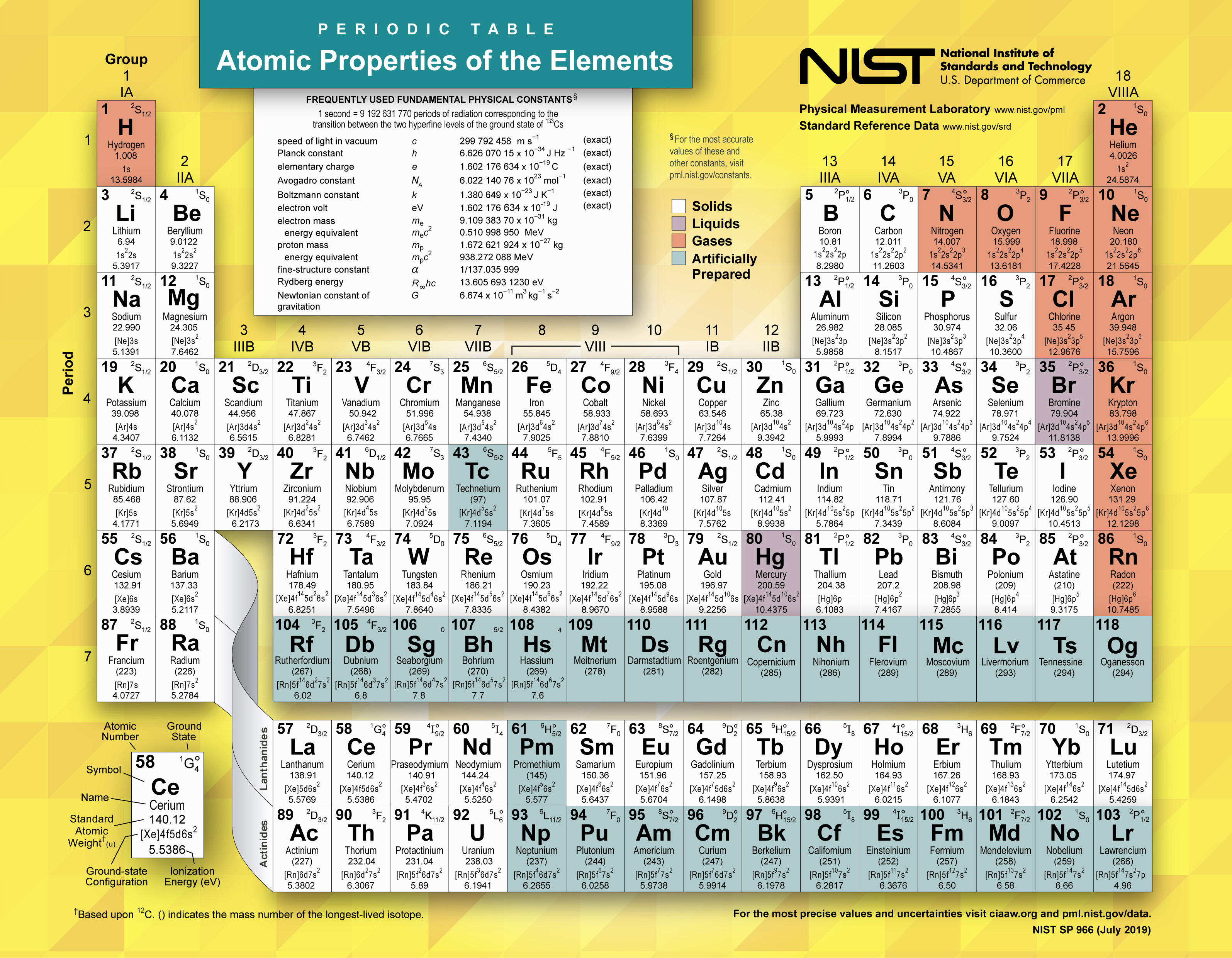 化學(xué)元素周期表是根據(jù)核電荷數(shù)從小至大排序的化學(xué)元素列表。列表大體呈長方形,某些元素周期中留有空格,使特性相近的元素歸在同一族中,如堿金屬元素、堿土金屬、鹵族元素、稀有氣體,非金屬,過渡元素等。這使周期...